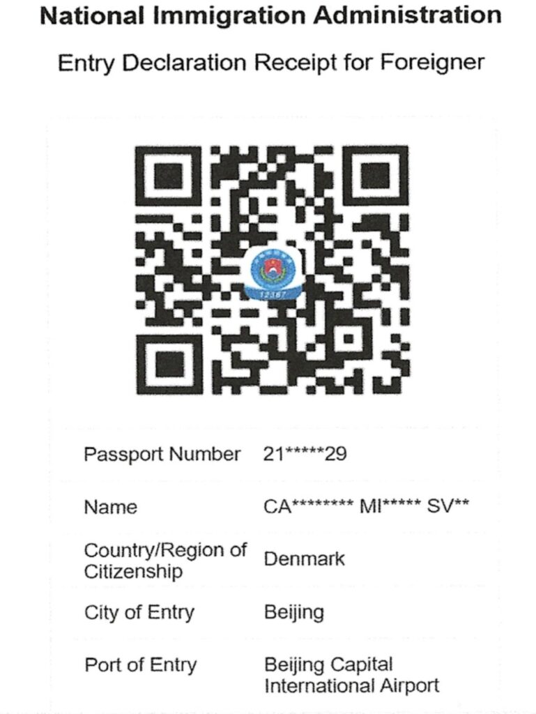 Ifølge kravene fra den kinesiske nationale immigrationsadministration skal alle ikke-kinesiske pasindehavere, der rejser ind i Kina, indsende deres indrejseoplysninger online.